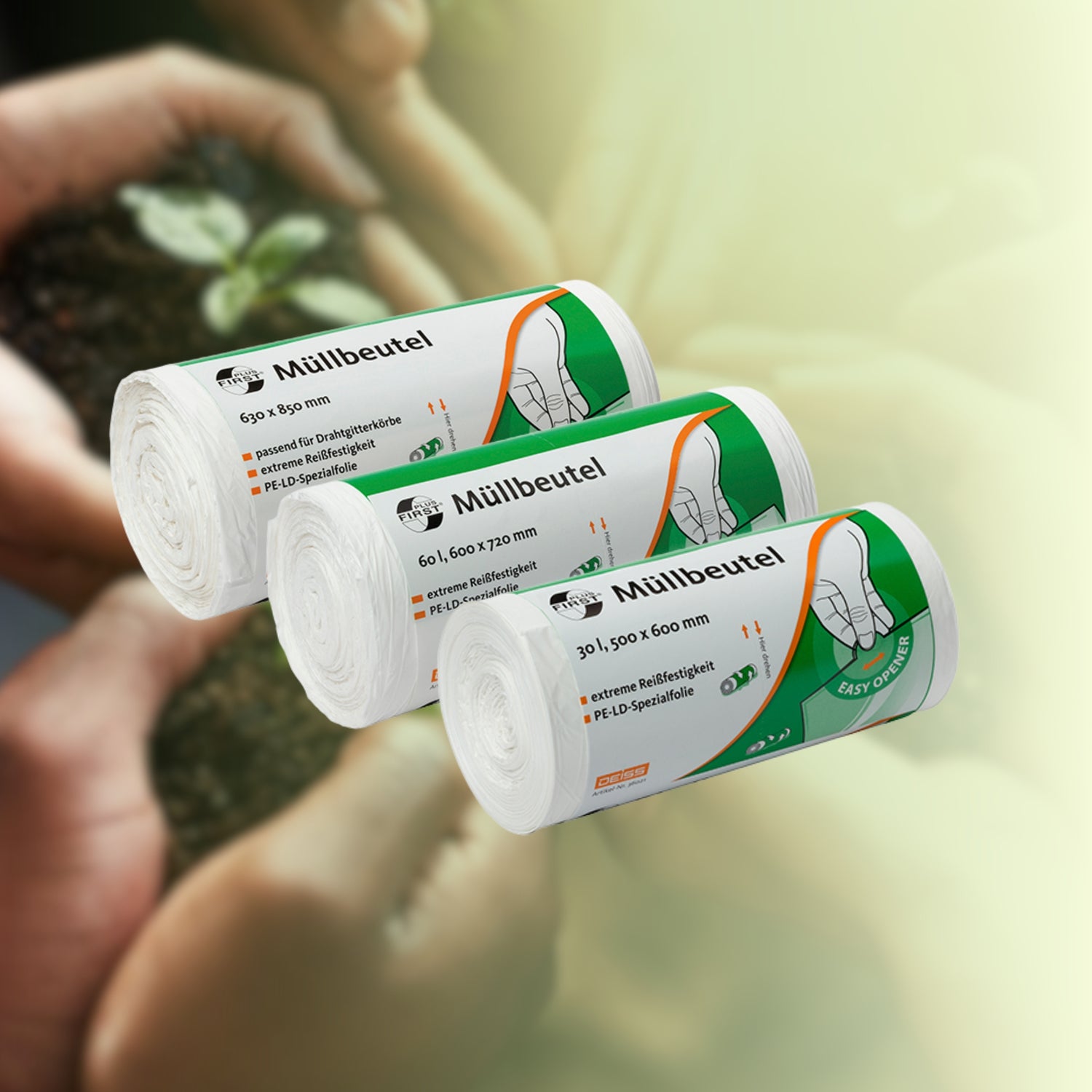 W DEISS odpowiedzialne działanie i ochrona naszego środowiska są na pierwszym miejscu. Worki na śmieci i worki na odpady są niezbędne do profesjonalnego usuwania odpadów – dlatego podczas opracowywania naszych produktów stawiamy na materiały oszczędzające zasoby, efektywne procesy produkcyjne i innowacyjne strategie recyklingu, aby znacznie zmniejszyć ślad ekologiczny.