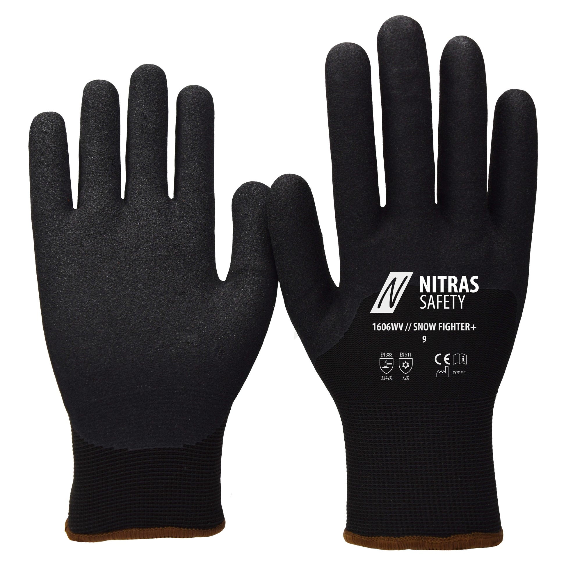 Die NITRAS SNOW FIGHTER+ Winterhandschuhe sind die ideale Wahl für alle, die in kalten Umgebungen arbeiten und dabei nicht auf Fingerfertigkeit und Komfort verzichten möchten. Das nahtlose Innenfutter aus Terry-Schlingengewebe sorgt für angenehme Wärme, während die gesandete Nitril-Beschichtung einen hervorragenden Trocken- und Ölgriff garantiert. Dank der 3/4-Beschichtung und dem elastischen Strickbund sitzt der Handschuh sicher und schützt zuverlässig vor niedrigen Temperaturen. Die hohe Rutschfestigkeit und der perfekte Grip machen diesen Handschuh zum unverzichtbaren Begleiter im Winter – sowohl für den professionellen Einsatz als auch für ambitionierte Heimwerker. PSA-Risikokategorie II sorgt für zusätzliche Sicherheit bei der Arbeit.