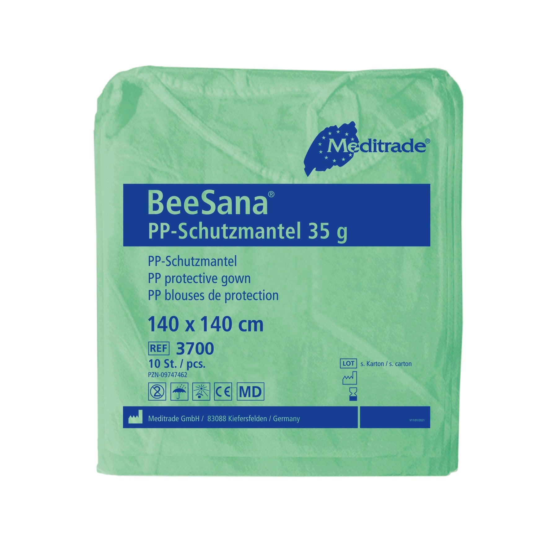 Płaszcz ochronny BeeSana® PP został specjalnie zaprojektowany do stosowania w placówkach medycznych i pielęgniarskich i zapewnia niezawodną ochronę personelu i gości. Wykonany z wysokiej jakości polipropylenu fartuch zachwyca lekkością i oddychalnością, nie tracąc przy tym żadnych właściwości ochronnych. Fartuchy jednorazowe są dostępne w praktycznych opakowaniach po 10 sztuk i dlatego stanowią ekonomiczne i wydajne rozwiązanie codziennego zapotrzebowania na odzież ochronną. Dzięki obszernemu krojowi zapewniona jest swoboda ruchów i komfort.