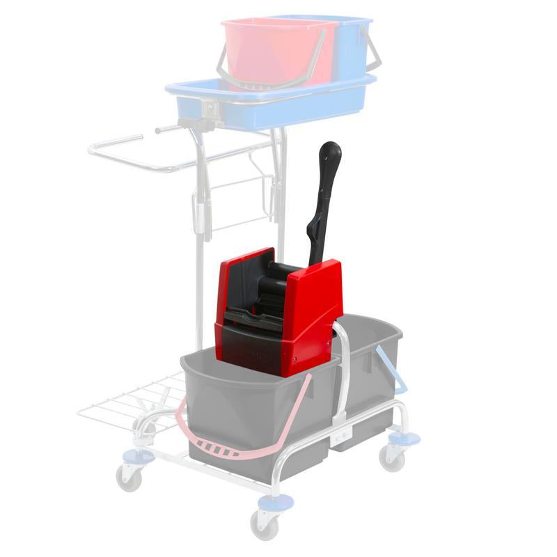 Die VERMOP Vermop-Presse VK4 überzeugt als hochwertige Mopppresse für den professionellen Reinigungsbereich. Sie ermöglicht ein kraftsparendes und gründliches Auspressen von Moppbezügen und Reinigungstüchern, wodurch sich die Arbeitszeit deutlich verkürzt und ein optimales Reinigungsergebnis erzielt wird. Die VK4 ist robust verarbeitet, einfach in der Handhabung und in vier auffälligen Farben erhältlich, was eine klare Zuordnung und hygienische Trennung verschiedener Reinigungsbereiche ermöglicht. Mit ihrer langlebigen Konstruktion und dem ergonomischen Design ist sie die ideale Ergänzung für jeden Reinigungswagen – speziell im Einsatz für professionelle Gebäudereinigung, Gesundheitswesen und Hotellerie.