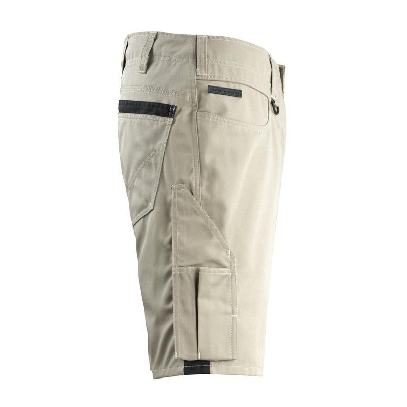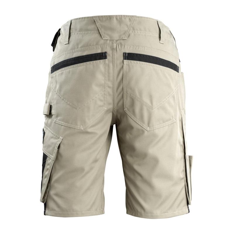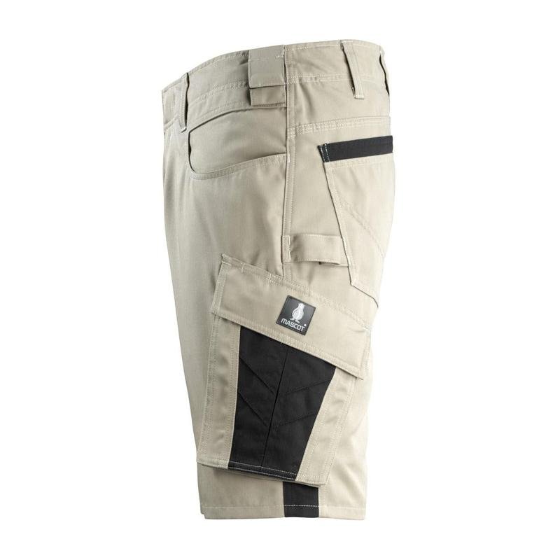 Die MASCOT® Stuttgart Shorts in der Farbkombination hellkhaki/schwarz überzeugen durch ihr leichtes Material, eine ergonomische Passform und eine Vielzahl an intelligenten Details, die sie zum idealen Begleiter für anspruchsvolle Arbeitstage machen. Dreifache Kappnähte an den Beinen und im Schritt sorgen für höchste Strapazierfähigkeit, während der formgeschnittene Bund und die niedrige Taille optimalen Tragekomfort bieten. Praktische Taschenlösungen, wie eine leicht zugängliche Handy-Tasche, eine verstärkte Zollstocktasche und verstellbare Hammerschlaufe, bieten Platz für alle wichtigen Werkzeuge. Die Shorts sind nach OEKO-TEX® STANDARD 100 zertifiziert und erfüllen den ProWash® - EN ISO 15797 Standard, was sie besonders pflegeleicht und langlebig macht.