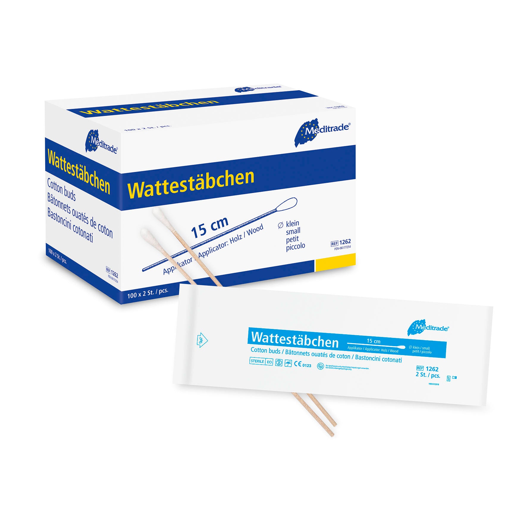 Waciki pakowane sterylnie po 2 sztuki, długość: 15 cm, mała główka, drewno | Opakowanie (200 sztuk)